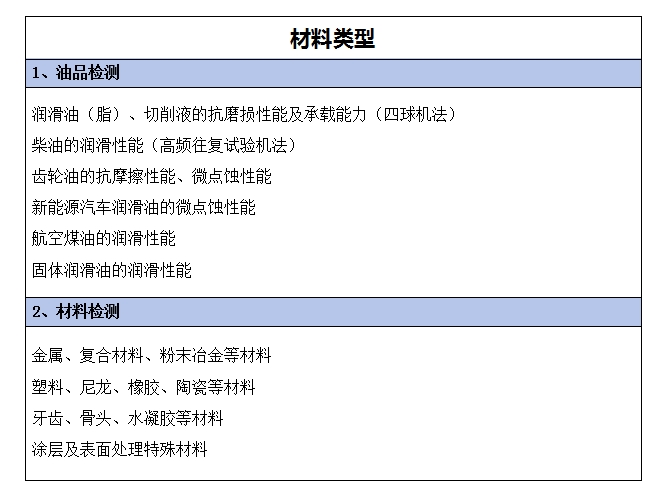 摩擦磨损测试项目及类别